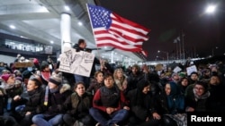 Пикеты недовольных противников указа прошли рядом с крупнейшими аэропортами Калифорнии и Нью-Йорка, которые обслуживают большинство международных рейсов. В Нью-Йорке в демонстрации приняли участие тысячи человек с плакатами "Мы не боимся" и "Добро пожаловать, беженцы".